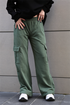 Kadın Haki Yeşili Geniş Paça Kargo Cepli Eşofman Altı MG1615