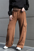 Kadın Kahverengi Geniş Paça Kargo Cepli Eşofman Altı MG1615