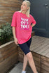 Pembe  Baskılı Bisiklet Yaka Overfit Kadın Tişört MG1999