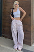 Pembe Kadın Beli Ayarlanabilir Bol Paça Dökümlü Çizgili Pantolon MG2087