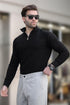 Siyah Polo Yaka Fermuar Detaylı Uzun Kollu Erkek Kazak 7282