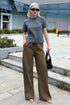 Sütlü Kahve Beli Büzgülü Bol Paça Kadın Pantolon MG2011