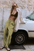Yeşil Kadın Ayarlanabilir Bel Rahat Kesim Pantolon MG2161